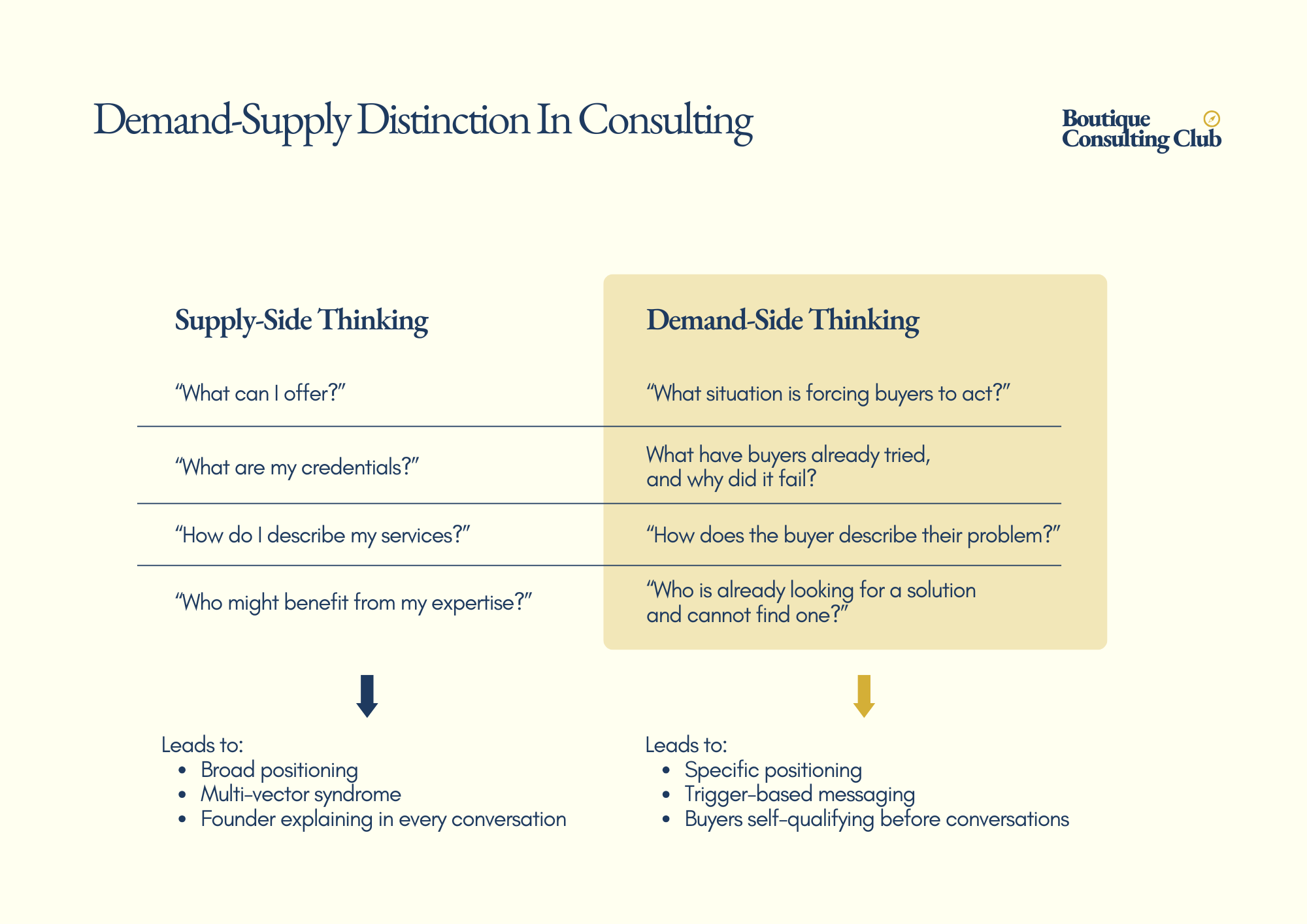 Visibility and outreach are demand-generation tactics. They work when there’s an underlying commercial system that can convert demand into real pipeline. When that system isn’t in place, more activity still creates more conversations - but those conversations skew toward the wrong kinds of buyers: exploratory calls, edge cases, proposals that stall out. The architecture determines what the activity converts into. Without it, effort goes in and exhaustion comes out.